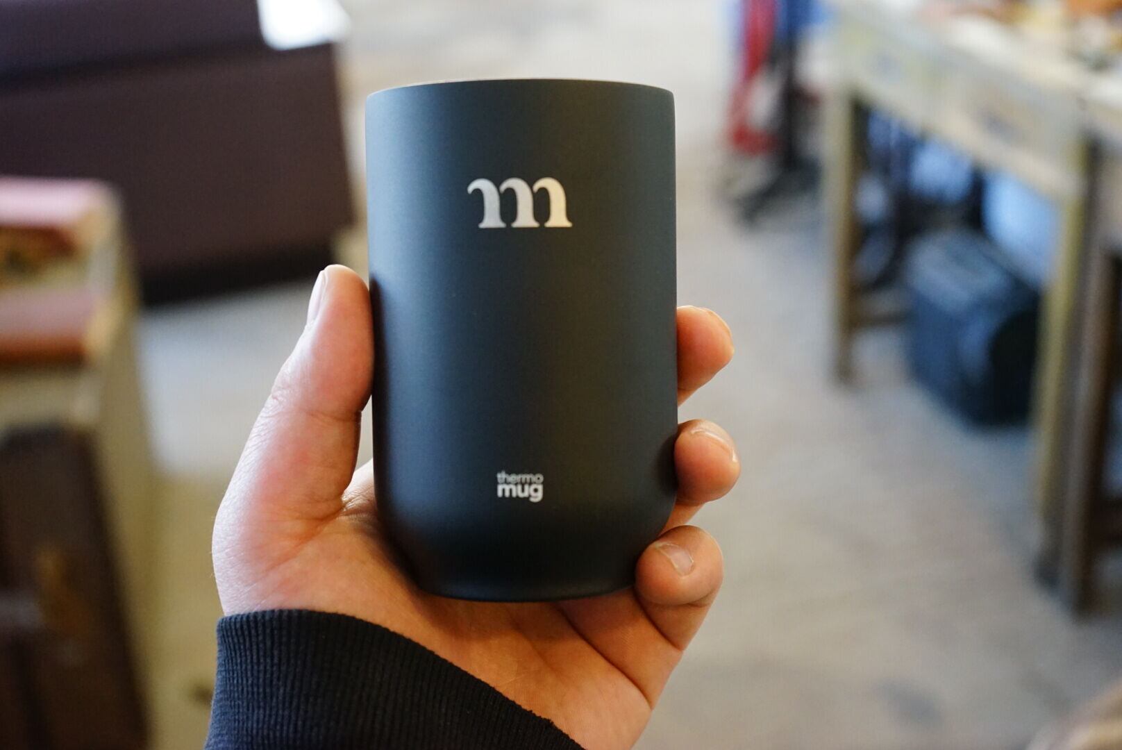 キッチンウェアブランド「thermo mug」とコラボレーションした、触っても熱くない湯呑み「ティータンブラー」です。 日本のコップの代表格である湯呑みをデザインモチーフにしており、陶器製の湯呑みのデメリットを真空二重構造によって解消しました。熱い飲み物を入れても冷めにくく、外面が熱くなりません。二重構造でありながら飲み口の厚さをわずか2mmにしたことで口当たりを良くしています。ホワイトカラーのコーティングにレーザー彫刻でmロゴを施しました。