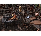 BANZAI五徳は焚火台を移動する為のちょっとした工夫を施しています。「hi-raku」が冷めたらBANZAI五徳を持ち手にして灰捨て場へ移動。