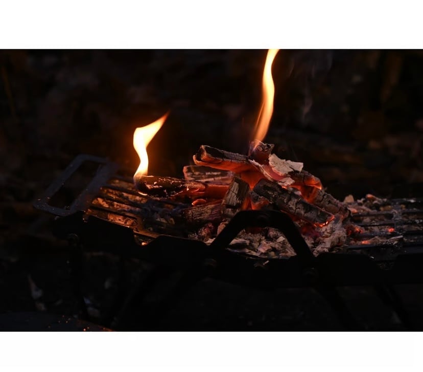 食事も終えて、五徳の橋渡しパーツを外し、サイドのパーツを下側に回して、薪を焚べて炎の揺らぎを楽しむのも良し。