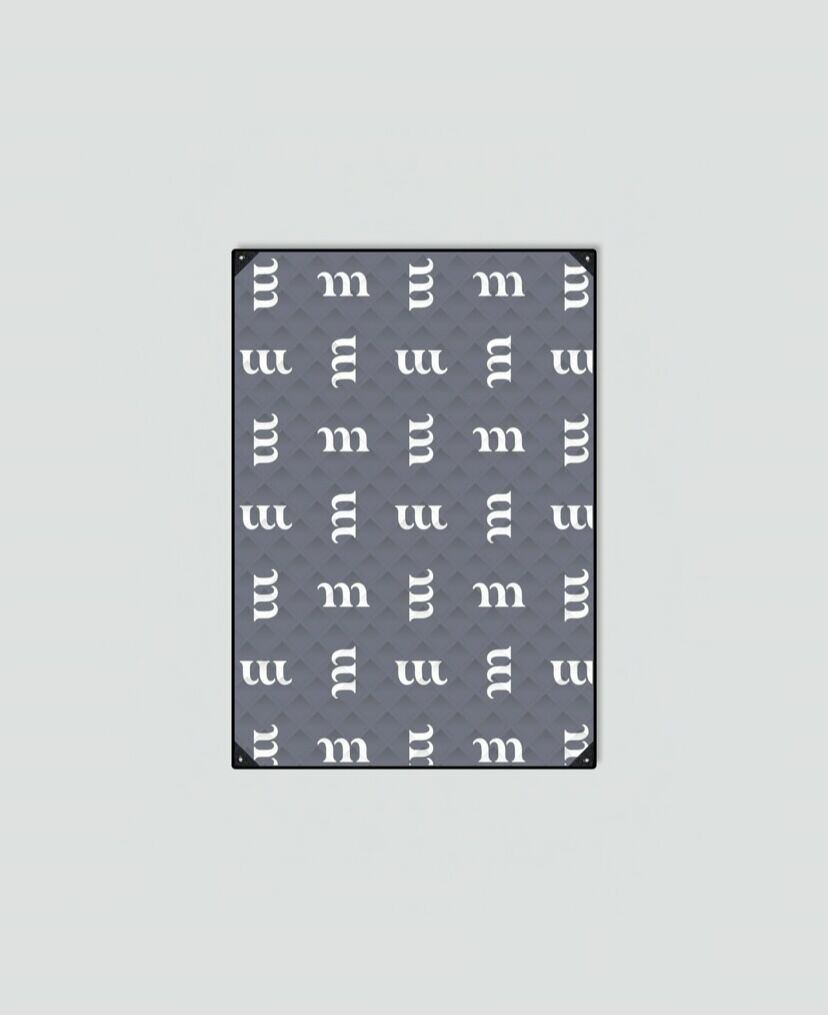 テントのインナーマットとして使える中綿入りの薄手のラグです。裏面には撥水加工を施し汚れが付きにくいため、レジャーシートとして公園でのピクニックやスポーツ観戦にも使えます。全面にmロゴをプリントしました。一般的なラグのサイズとして馴染みのある140×200cmに仕上げています。