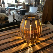 酒樽をイメージしたシェード。漏れる灯りが綺麗です。