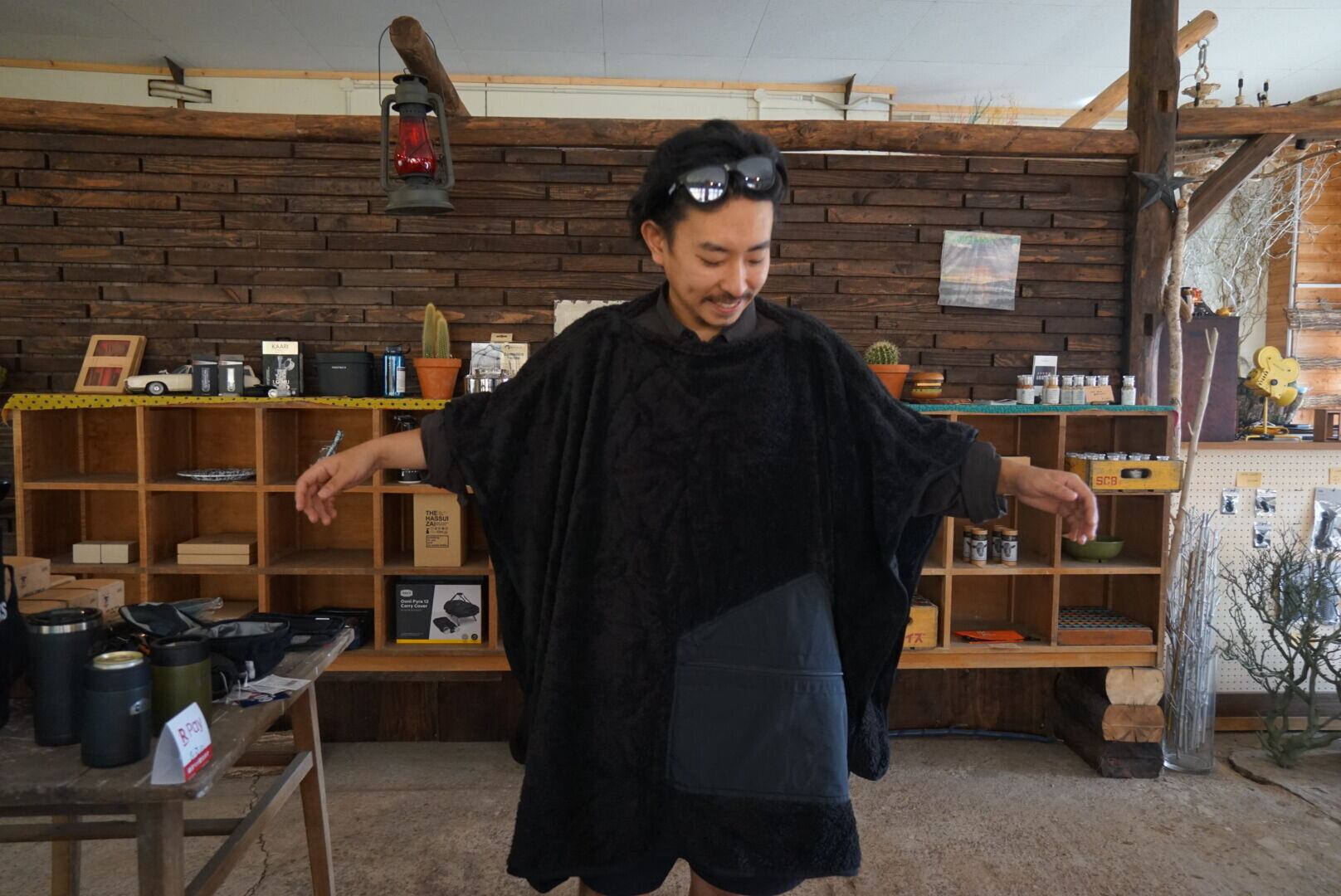家のインテリアとしても良いですし。普段は車に積んで、キャンプ場でも使うそんな活躍もしてくれる勝手のいいクッションです。 アウター着るほどじゃないけど、ちょっとだけ肌寒い時にポンチョにしたくなるはず。