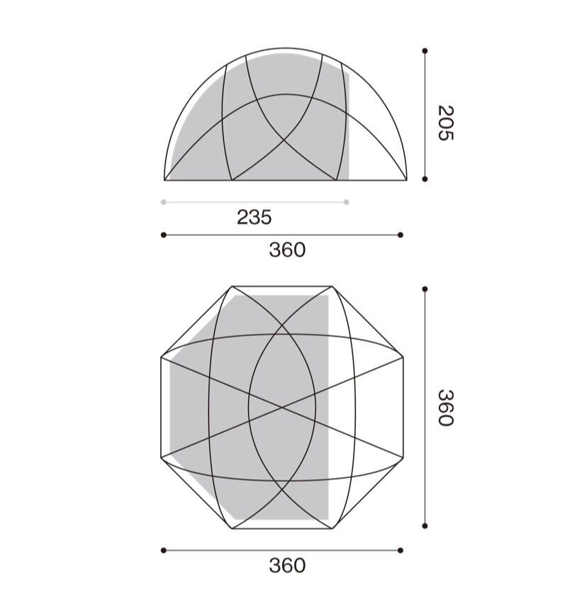 高さ205cm、直径360cmの広々としたサイズ。半球型で205cmの全高は、大人が直立しても快適に活動できます。