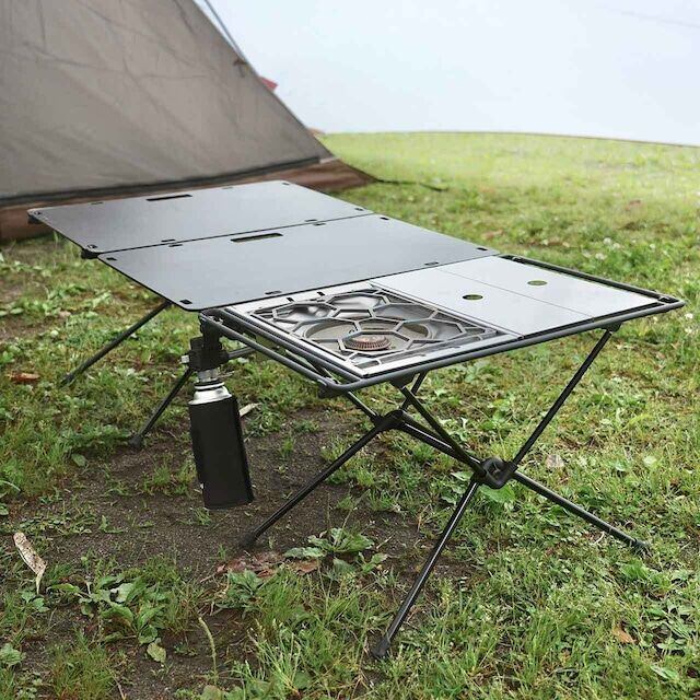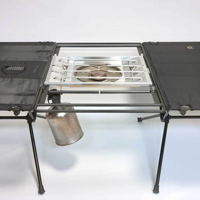 ヘリノックスのテーブルワンMサイズの脚(フレーム)を別途用意し、本品とセッティングすることで、IGT規格の2ユニット分までセットすることができます。