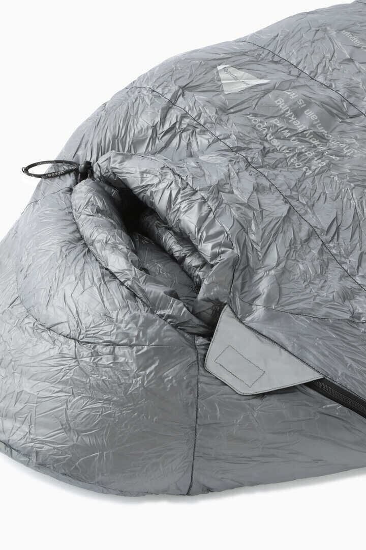 A sleeping bag made in collaboration with NANGA, a Japanese-made down specialist. The Spanish duck down is washed in Japan and super water repellent to prevent wetting, which is a weakness of regular down sleeping bags. By enclosing 500g of 770 fill power down in a box quilt structure, you can sleep comfortably up to about -2 degrees. NANGA's safe and secure products are created by carefully performing each process, such as feather encapsulation, sewing, and manufacturing technology that utilizes skilled craftsmanship. A reflector print of the brand copy is applied on the special gun metallic color.