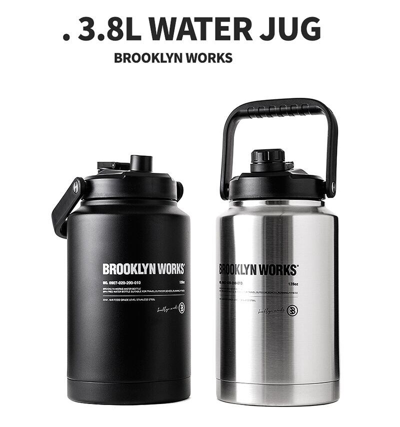 ブルックリンワークスの「3.8Lウォータージャグ」です。 最もフィールドテストを実施したアイテムの一つで、高い保冷力と保温性を誇ります。 ビーチに行ったり、山に行ったり、キャンプに行くときは、氷や暖かい飲み物や保冷が必要な飲み物を入れてください。 素材:ステンレススチール サイズ:W15.8cm×H32.4cm×D15.8cm 容量:3.8L 重量:1690g