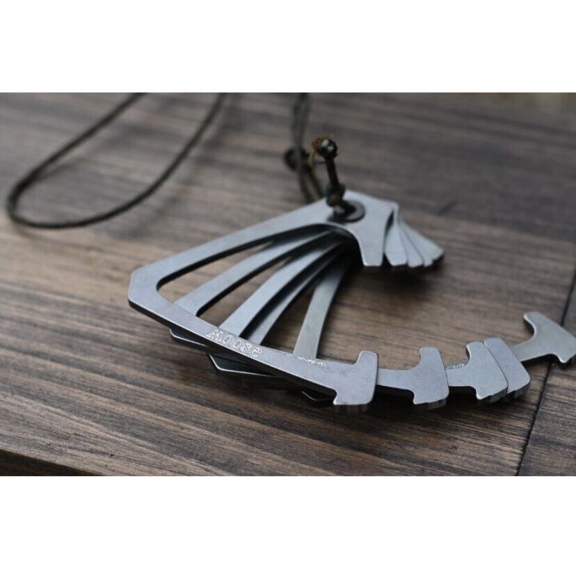 フック上部の穴にパラコードを通す事で収納時にバラけないのも特徴の一つ。収納時、モノの紛失を防ぐのに一役買います。