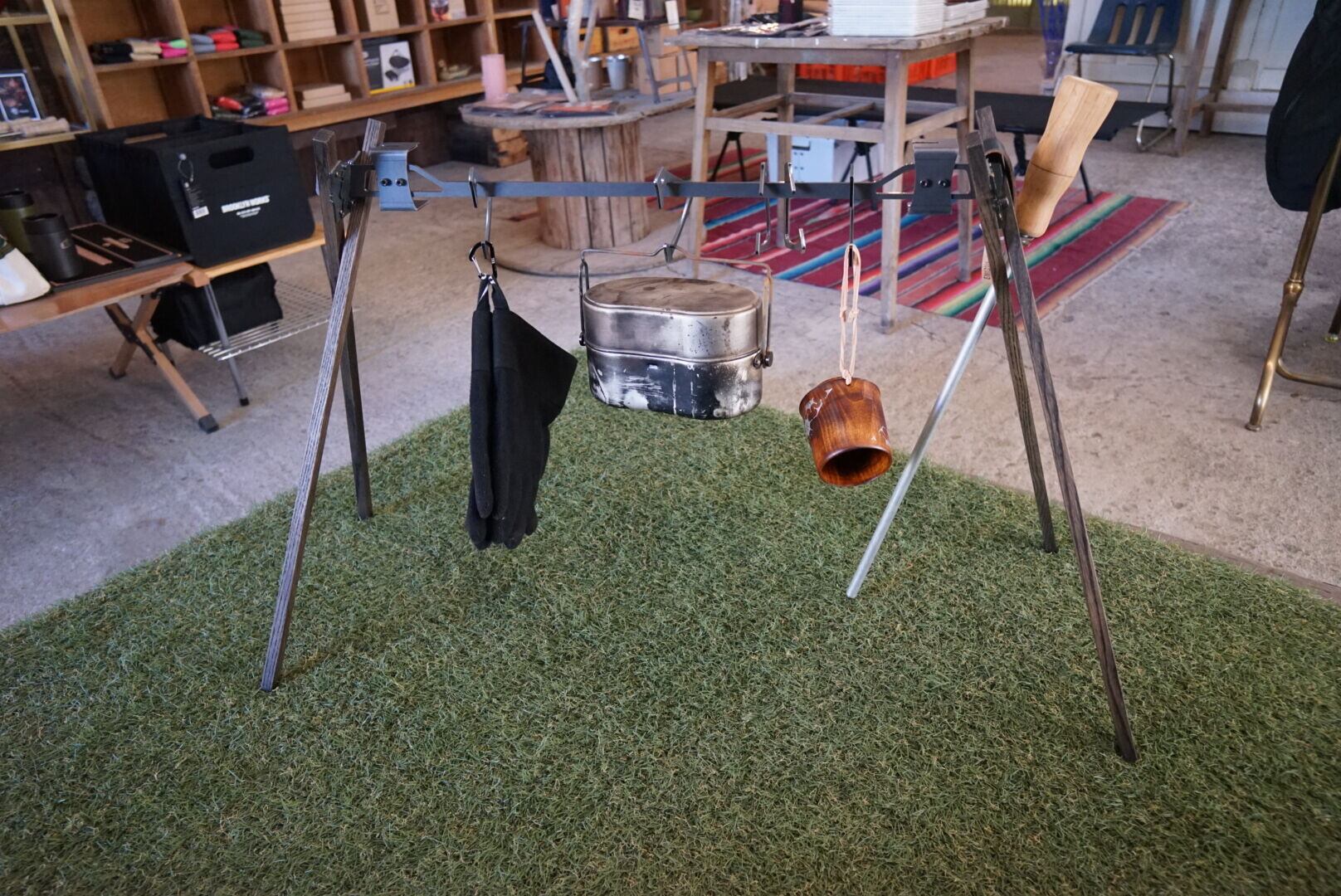 ・ギアのハンギングを目的とした製品となります。焚き火ハンガーとして使用した場合、脚に使われている木材が燃える可能性がありますので御控えください。