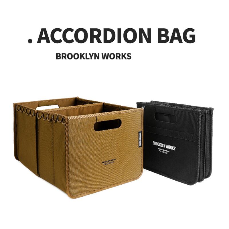 ブルックリンワークスの「アコーディオンバッグ」です。 キャンプ場で使う様々なギアの整理整頓やビニール袋に入れ食材を分けて入れたり、 ご自宅で子供たちの玩具やメンテナンスキット等を収納したりと大変便利な多目的収納バックです。 素材:ポリエステル サイズ:W32.5cm×H27.5cm×D49cm 重量:1375g