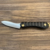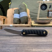 折り畳める包丁をコンセプトとした、折畳式料理ナイフの形状をヤマ飯ナイフにも採用。山に持ち出せる携帯性と包丁の操作性を両立する切りやすくてコンパクトなナイフです。ハンドル材は3種類。イペ、名栗イペ、ブラック[積層強化木]を使ったハンドル材を展開。サイズが小さくなることで見失うことを軽減するために、首やバッグから下げれる真鍮製のランヤードホールがついております。