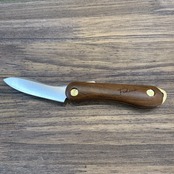 折り畳める包丁をコンセプトとした、折畳式料理ナイフの形状をヤマ飯ナイフにも採用。山に持ち出せる携帯性と包丁の操作性を両立する切りやすくてコンパクトなナイフです。ハンドル材は3種類。イペ、名栗イペ、ブラック[積層強化木]を使ったハンドル材を展開。サイズが小さくなることで見失うことを軽減するために、首やバッグから下げれる真鍮製のランヤードホールがついております。