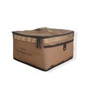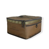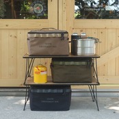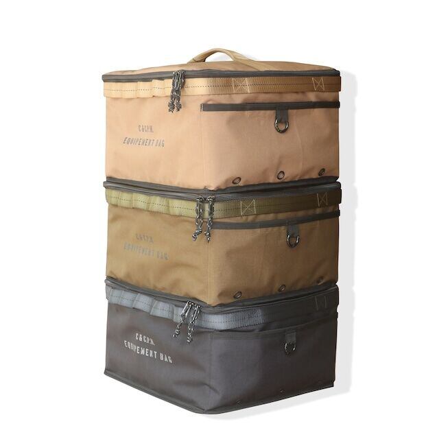 生地内側には5mmのパッド入りなので、大きめの調理器具やお鍋などを入れることが可能です。取り外し可能な仕切りが縦に2枚付属。一緒にガス缶など調理に必要な道具をまとめておけます。使用時は、ユニフレームのフィールドラックの下にちょうど収まる大きさ。