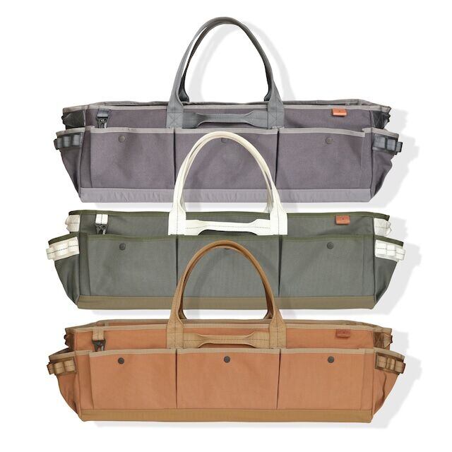 大きくて重さのあるロールトップテーブルの脚と天板をまとめて収納。被せにジッパーが付いた仕様の間口は使い勝手よく、荷物が飛び出す事なく綺麗に収まります。
