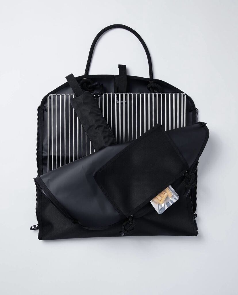 ファイヤーウッドキャリアーは、重量のある薪を楽に運べるキャリートートです。「SATELLITE FIRE BASE」や「GRILL MESH」の運搬にも適しています。サイドのジッパーをフルオープンにすれば薪バッグとして、閉めればトートバッグとして使用可能。小物の収納にも使えるポケットも付属しています。柔らかく手に食い込みにくいロープをハンドルに採用しました。
