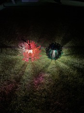 アクリルの羽根を順番に差し込みゴム紐で固定