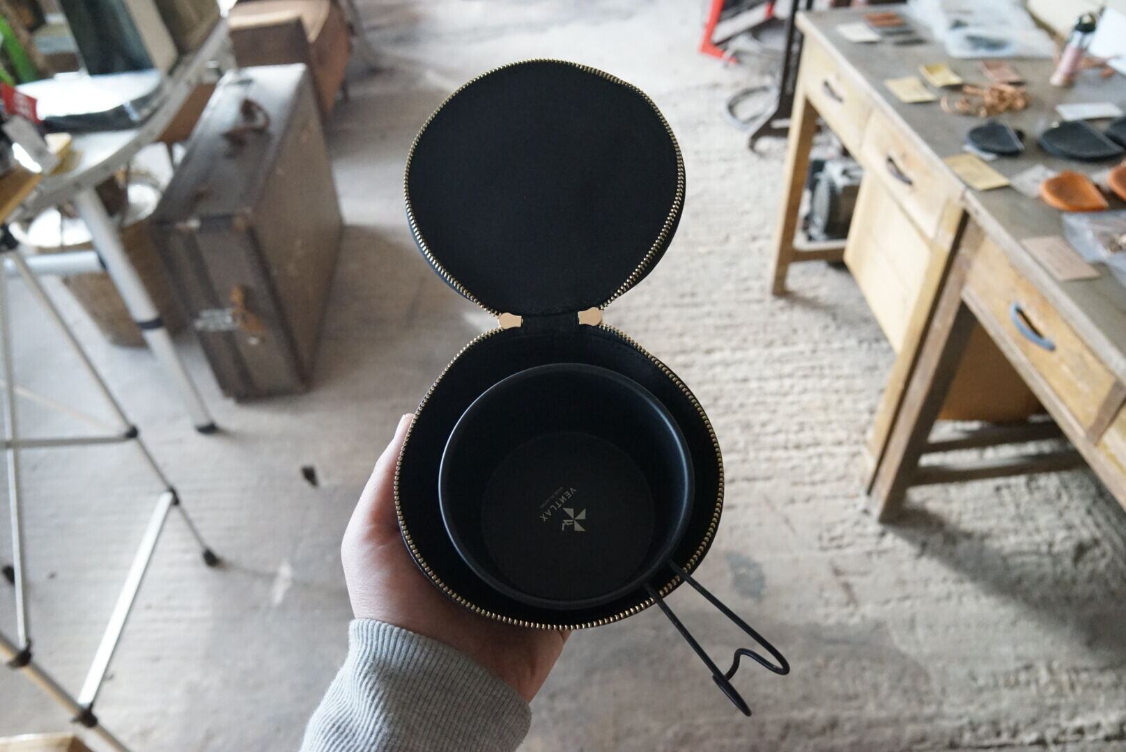 上品な牛本革を贅沢に使用し上面にVENTLAXロゴを型押ししたシェラカップケース。浅型のシェラカップが2〜3枚収納出来るのでソロキャンプに適度なサイズ感。ナイロンでは味わえない革のエイジングをお楽しみください。