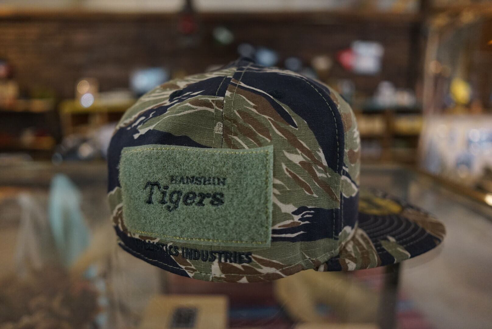 タイガーストライプは正面に阪神マークをソリッドブラックで立体刺繡、後方右寄りのベルクロ上には「 HANSIN TIGERS」の刺繡を入れ、その下に「 BALLISTICS INDUSTRIES」の刺繍を入れています。