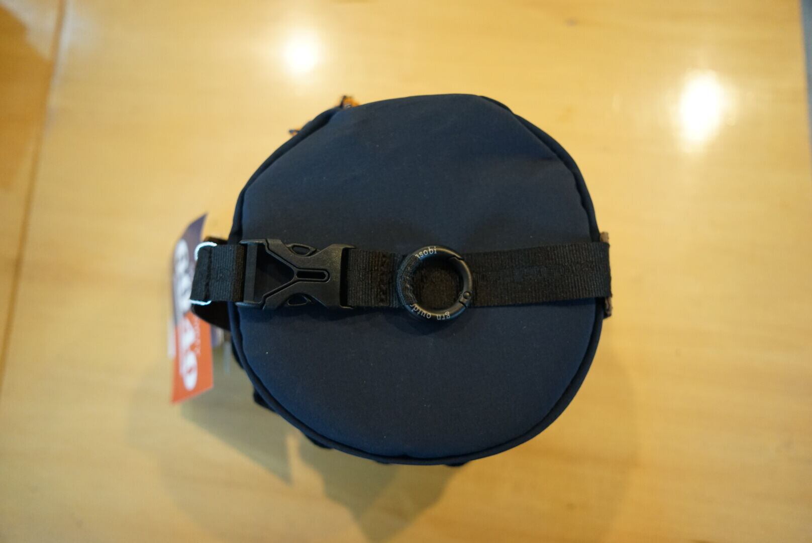 収納の際は中のゴムバンドで止めることが出来ます。またストラップがあるので吊るすことが可能です。