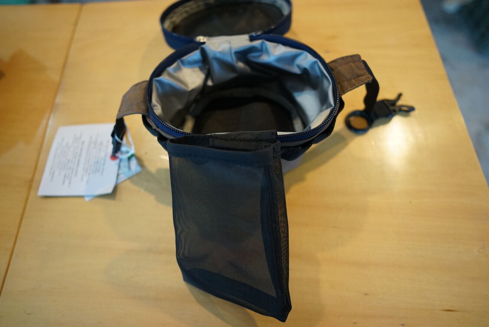 ZIPを開けると中からメッシュポケットが飛び出し、蓋側にもポケットがあるので、キャンプ中に出した箸、フォーク等のカトラリーが収納可能になり、洗ったものは乾かすことができて一石二鳥です。