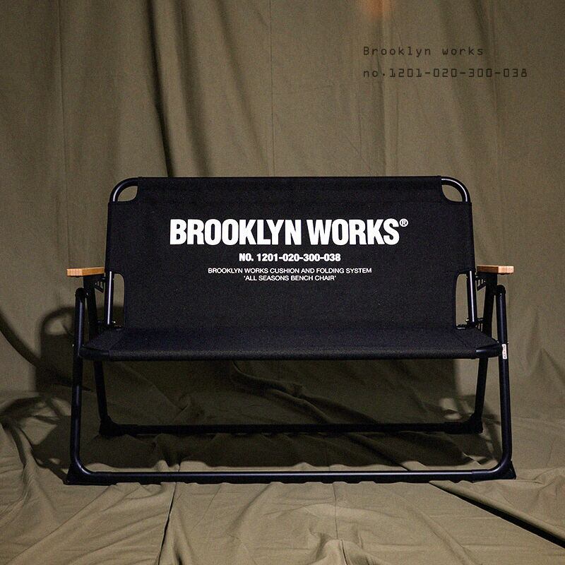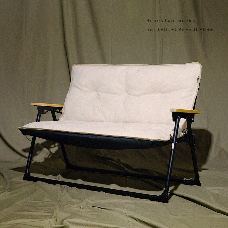 ブルックリンワークスで展開する「ベンチチェア」です。 チェアにはクッションカバーが付属しており、季節に応じて取り外しが可能です。 折りたたみ方式で使用しないときは隙間保管ができ、インドアやアウトドアでの携帯性も高く持ち運びにも便利です。 ※収納バッグ付き 素材:ポリエステル・アルミ・木材(肘掛) サイズ:W100cm×H65cm×D51cm 重量:3.8kg