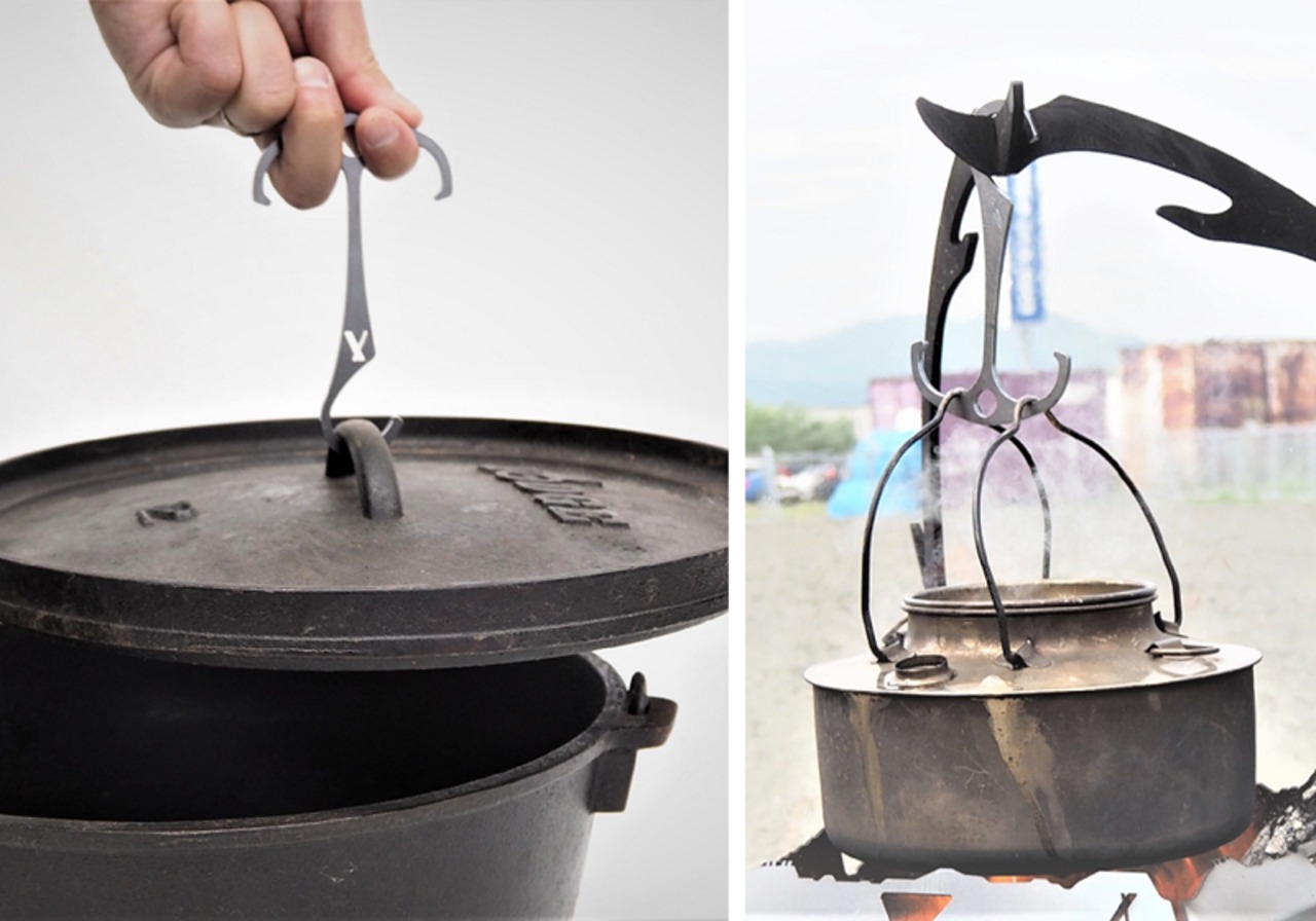 焚火を利用した吊り下げ調理時の長さ調整にも一役。