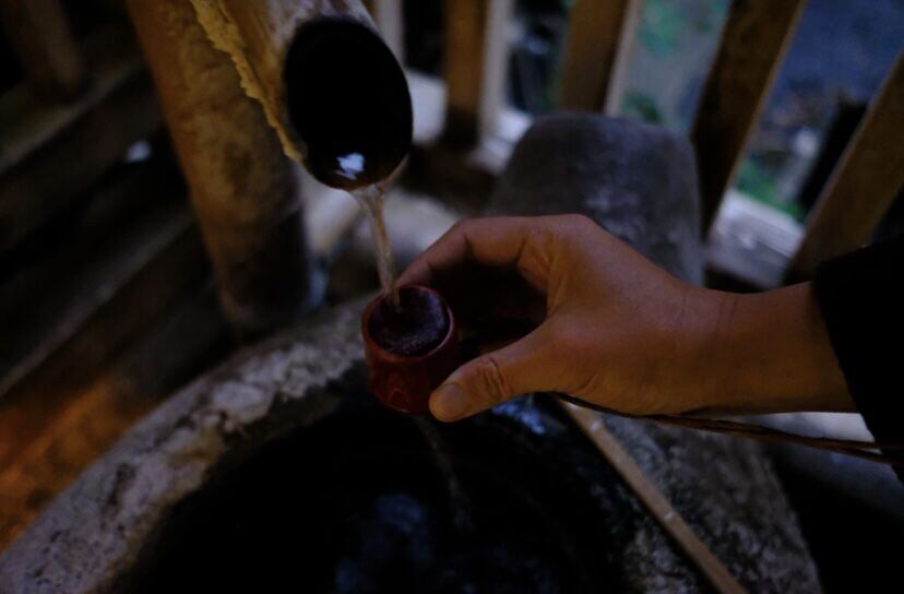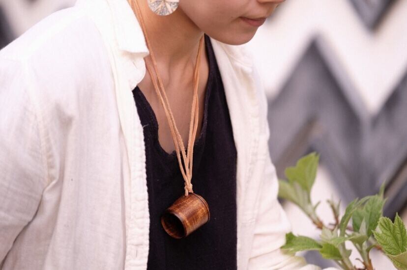Material/栃材・本漆(本体)、鹿皮(紐)