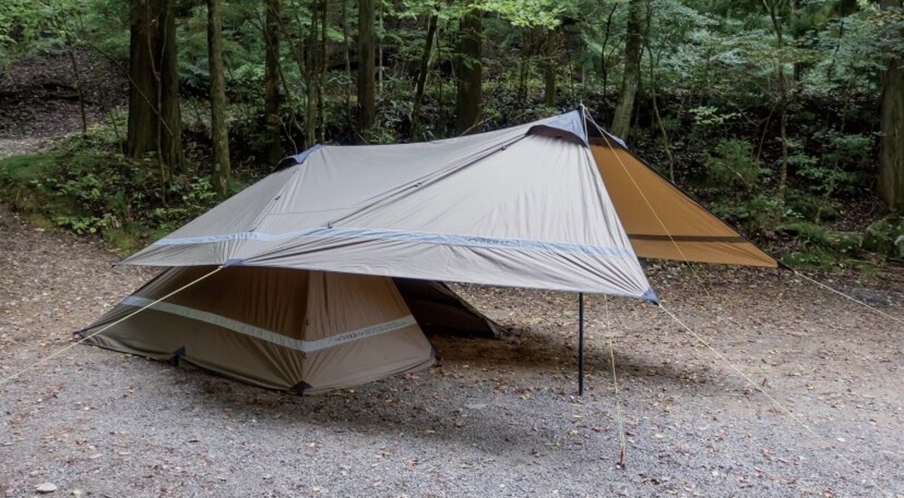 YOKA TIPIに連結でき、簡易シェルターとしても使えるタープです。