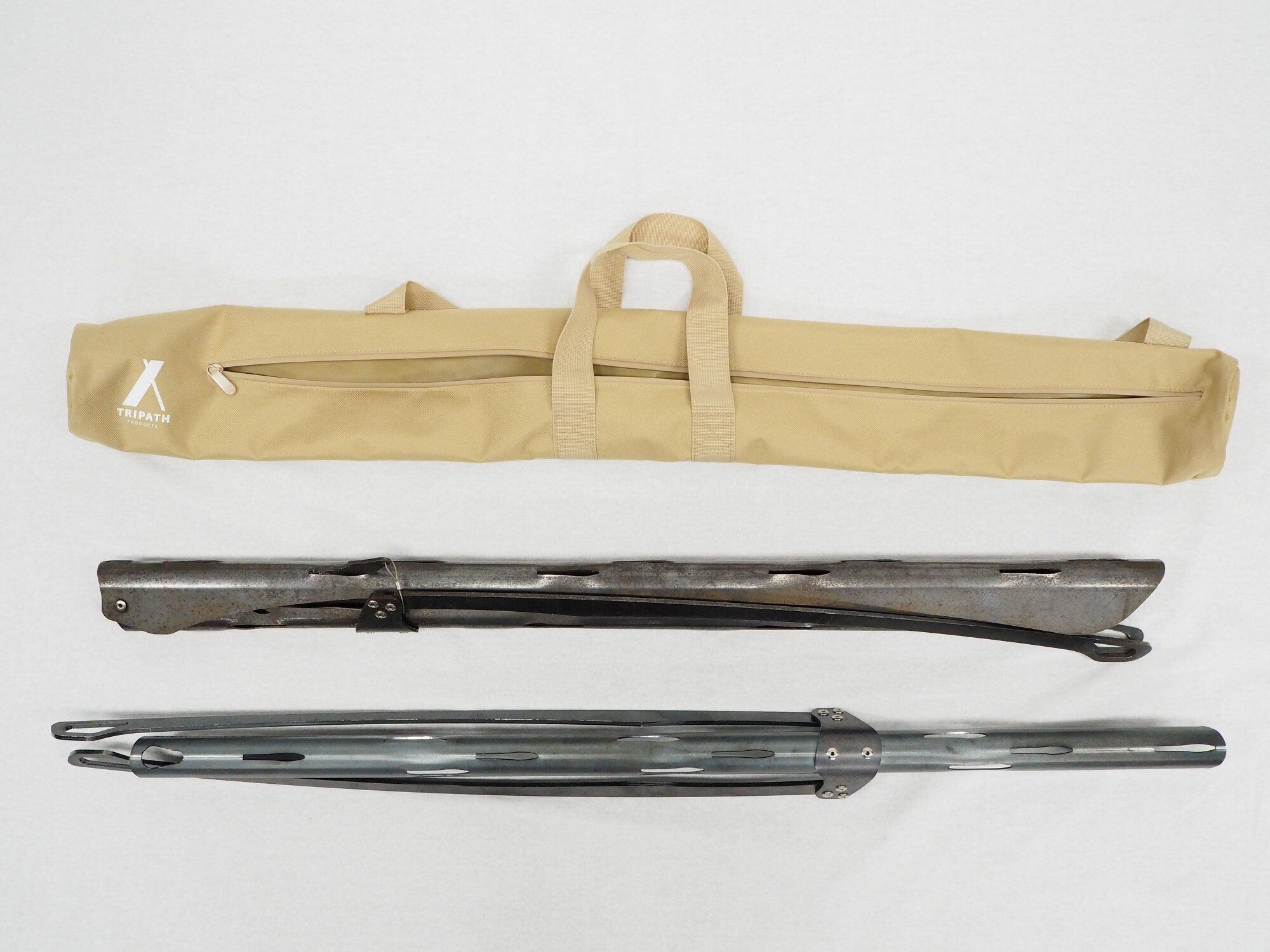 ツノスタンド2本同梱収納可能(写真はツノスタンドショート・ロングを1本ずつ収納)なスペースがあり、タープポールなどの収納もおすすめです。