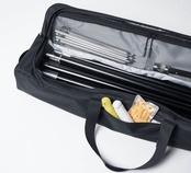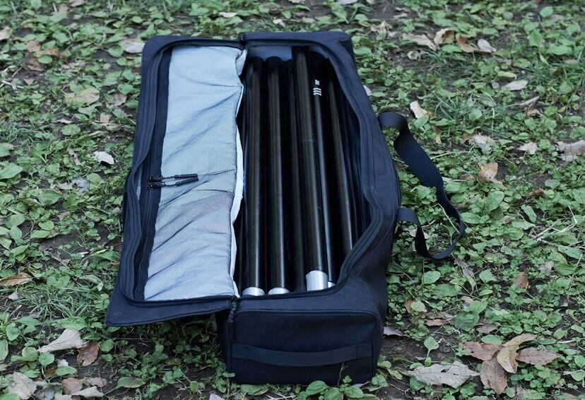 タープポールや三脚など長尺物の運搬に適したキャリーケースです。70cm×Φ 31mm相当のポールを最大24本入れることができます。大きな開口部により内部を視認しやすく、スムーズな出し入れが可能。内部側面には衝撃をやわらげ るパッドを設置し、ポールを確実に守ります。