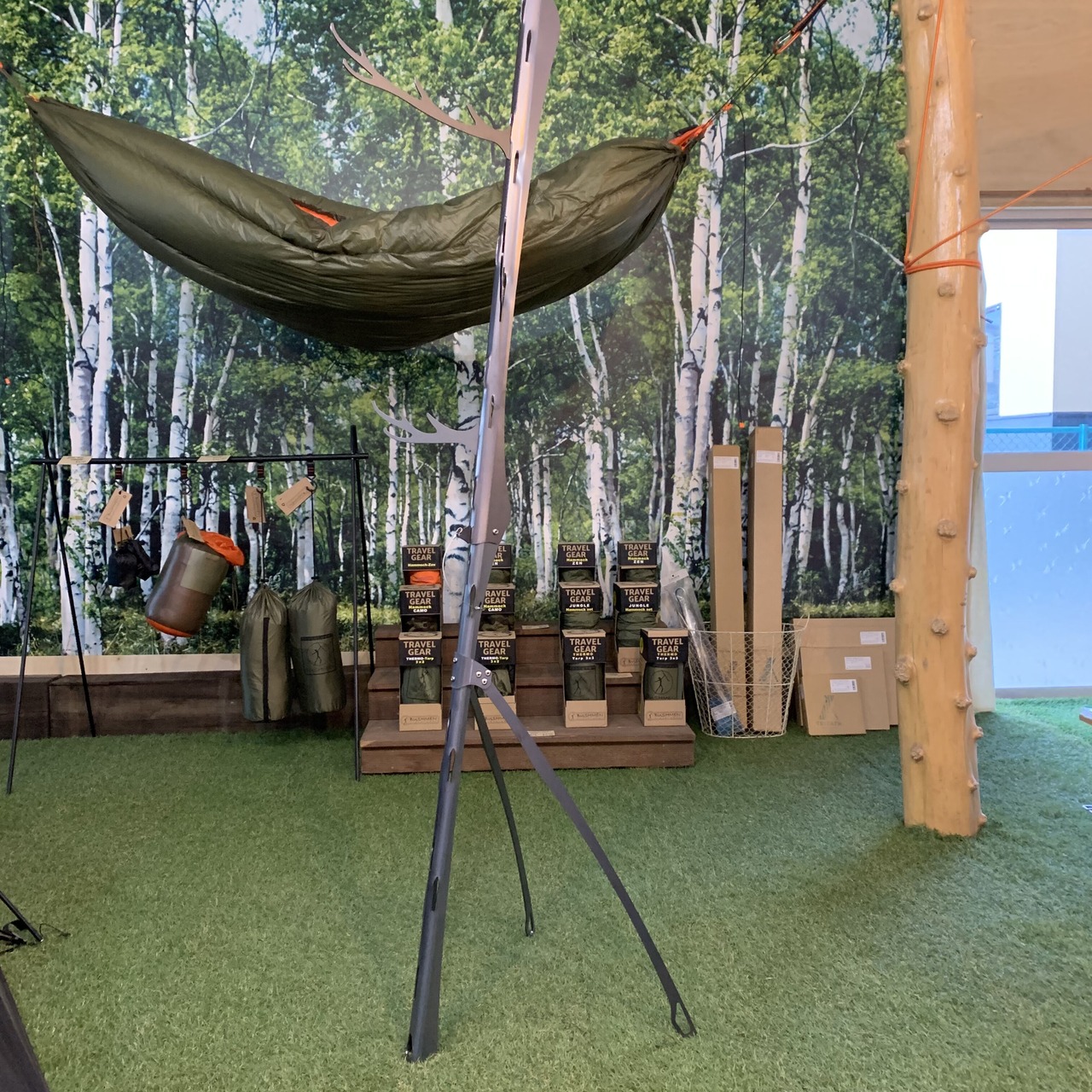 3本の脚にはそれぞれペグダウン用のペグホールを設けており、地面に固定することが可能。